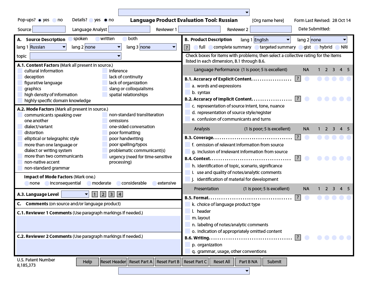 Former USG member of the team at the University of Maryland Center for Advanced Study of Language that developed the Language Product Evaluation Tool |